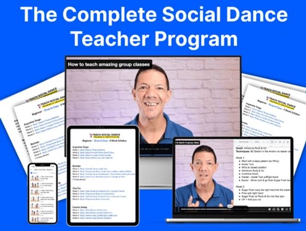 The Complete Social Dance Teacher Program gives you everything you need to attract new dancers, teach with confidence, and build a thriving community — including lesson plans, marketing strategies, teaching frameworks, and the opportunity to earn your S.T.E.P. Certification.