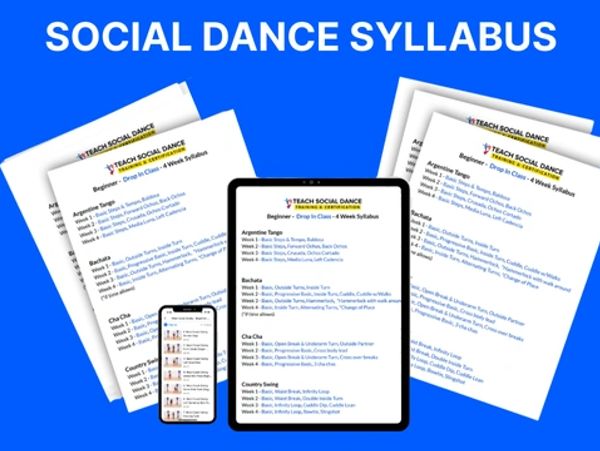 View our complete social dance syllabus for 17+ different dance styles. It's broken out into 2 syllabus levels for a step by step guide. Beyond that there are 1500+ videos in 5 different levels so you never run out of moves to teach.